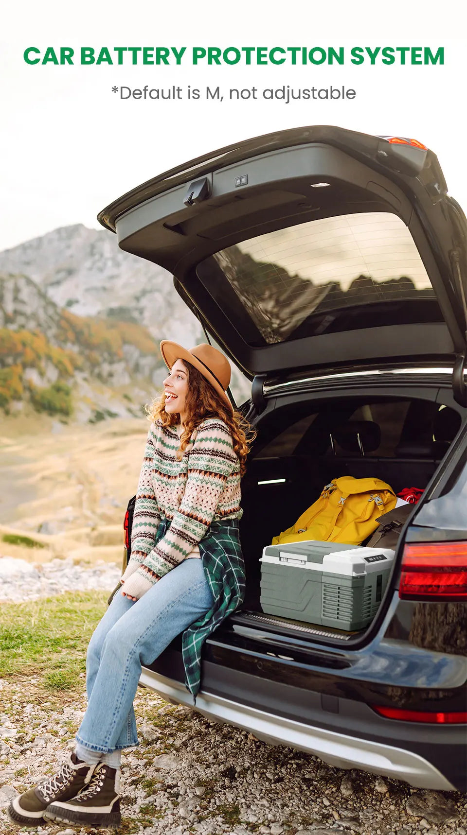 Equipped with 100/240V AC and 12/24 DC adapter, allows you to use the electric cooler at home or in the car, enjoy the flexibility with two power supply modes. The battery protection system prevents the portable fridge draining your vehicle's battery, providing peace of mind during your trips.